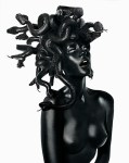 Rankin and Hirst, photographer and artist, show historic, mythical, traditional monsters in a modern light. It is as though the creatures we were told about as children have just undergone a transformation and gained a 21st century edge, a sort of fashion overhaul. With the help of model, Dani Smith, the long term friends took their influences from antiquity, and transformed beauty into the grotesque, with skulls, darkness and prosthetic creatures.