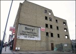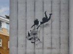 Spotted. A woman falling down a building in Mayfair, her shopping trolley with her. On the other side of the city in Canary Warf a written message can be seen: ‘Sorry! The lifestyle you ordered is currently out of stock.’ The two marks of graffiti are thought to have been left by Banksy, possibly reminding the wealthy and the financial elite about the recession.