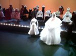 We are greeted by a reconstruction of 30 avenue Montaigne before being guided through a taste of parisian couture in central London. The actual staging of the exhibition is almost identical to last year’s Louis Vuitton at Musee des Arts Decoratifs in Paris and is beautifully done. On display are dresses which have been worn by everyone from Natalie Portman to Audrey Hepburn. We are shown ‘toiles’, a kind of mock up of haute couture designs from the original designs of Christian Dior, John Galliano and Raf Simons which are accompanied by Dior’s original sketches. Also on show is a beautiful fashion theatre which comprises of miniature versions of couture gowns throughout the decades in their original fabrics.