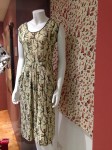 As we move in time upstairs we move into the world of pop. A generous section of the exhibition is devoted to the prints and illustrations on fabric of Andy Warhol, who shows us a little more than soup cans and repeated celebrity faces. Also here are designs from the museum’s founder, Zandra Rhodes, who provides lovely prints made up of lips and cosmetics. My personal favourite textiles on display come from American artist Saul Steinberg, most famous for his cartoons and illustrations, whose designs feature circuses and weddings.