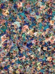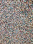 From a distance the work looks like Jackson Pollock collided with pointillism while eating candy floss. The fourteen paintings all appear similar, with bright, pastel colours bursting with thick paint. The paint is so dense that it is hard to resist touching its tactile surfaces. As the viewer moves closer to the images, they begin to see faces within the paint that look like they are grinning at you with large cartoon eyes and over-the-top smiles.