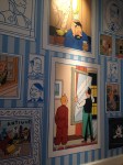 The setting for the exhibition has been transformed into a hand drawn cartoon world. All of the walls have been covered in Hergé’s illustrations. Even the fireplaces and windows have been covered over with characters from Tintin’s escapades. Each of the three rooms has been turned into one of the most loved settings from his adventures including Captain Haddock’s Marlinspike Hall. Not only are we able to walk into the twilight cartoon streets, but real models of locations from Tintin’s tales are also on display. This explains Hergé’s interest in design and architecture and gives us the opportunity to have a three-dimensional glimpse inside Tintin’s bedroom.