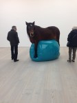 The most memorable piece for me seems extremely sad. I am not quite sure what it says about an exhibition when the thing you remember most is because of the intense sadness it causes within you instead of a display on intense beauty. This sadness appears in the form of a papier mache model donkey lying on one of the gallery floors. He is positioned on his side with his limbs tied together with a rope and looks to be in crippling pain. The animal has been painted in a celestial blue and the white of his eyes are black. The piece was made by Mia Feuer in collaboration with Palestinian children as a tribute to the mode of transport used in the region where Palestinian’s have been unable to drive motor vehicles. Also on show in this particular gallery are work from two other artists from the Middle East – Iranian artist Sohelia Sokhanvari and Saudi Arabian Maha Malluh. Like Feuer, Sokhanvari depicts an animal, this time in the form of a taxidermy horse astride a blue balloon. The piece has been a favourite of instagrammers all over London, probably due to its strangeness. However, after doing a little digging, it seems that it also has a deeper social meaning, being a metaphor for the 2009 ‘Green Movement’ where demonstrations led a fraudulent election result to be annulled. Feuer and Sokhanvari’s animals are displayed against the backdrop of Malluh’s display of burnt bottomed cooking vessels. Food For Though – Al-Muallaqat, is probably a lot more mesmerising than it should be. The silver tones mixed in with black charcoal stains glitter like mosaics. Yet this three dimensional wall decoration relate to pre-Islamic hanging poems as well as the burnt out state of globalisation and consumerism.