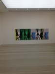 What the works mentioned in the previous paragraph have to do with Champagne is a good question. This title has been taken from the work of Julia Wachtel, whose images impose celebrity culture with cartoon characters and bright colours. One image shows many repeated photographs of Kim Kardashi and Kanye West turned upside down and embellished with blue figures of Minnie and Mickey Mouse. While Wachtel’s work shows the world of celebrity however, it is more likely that the Champagne title has been chosen in homage to the exhibition’s sponsor, Pommery Champagne.