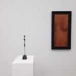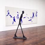Both Giacometti and Klein were conscious of the effects that the Second World War had on the culture and people of Europe. The curator, Joachim Pissarro has been quoted as saying that ‘both artists, rather than creating something that reflected the chaos, chose to rise above it, transforming and deciphering it into elegant, lyrical matter.’ This is seen with Klein’s playful anthropometric paintings made from the blue imprints of nude ladies onto canvas, juxtaposing the thin, drawn out, serious characters constructed by Giacometti.