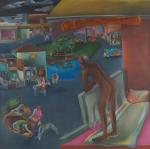 Khakhar’s homosexuality is prevalent throughout his oeuvre, with some quite explicit scenes of same-sex encounters on display throughout the last galleries. Of these, the most memorable is an image of two winged angel like men in an amorous encounter, caressing each other against a hot pink backdrop.