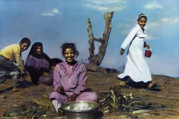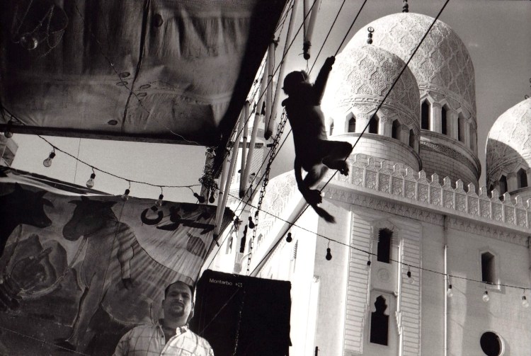 “I have no memories of Cairo”, says Armenian-French-Egyptian Boyadjian, “I lived in Paris 15th and received a very Parisian education. Even if at my parent’s home one spoke all the eastern languages playing tric-trac.” And, while she was exposed to her father working in Paris, she was not educated by her father in shooting photographs or how to work in a laboratory. Angelo Boyadjian, a studio photographer who exhibited in Cairo in the 1940’s was not the main inspiration on his daughter. “My education as a photographer was done in the discovery of Henri Cartier-Bresson, Robert Frank, Koudelka, Ara Guler that my father ignored because as a studio photographer these kinds of photographs did not interest him”, she says. That said, Boyadjian whose mother is French and whose father is Armenian from Egypt, has been influenced by her heritage in Egypt and Armenia and she has created several series of images that photograph both locations. Boyadjian has made a deliberate choice to focus on these places in her work and was persuaded to visit by her partner Daniel Juré and even exhibited in Alexandria at the French Cultural Center in 1994, during which time the artist stayed for a month and explains she really fell in love with Egypt. She describes the manifestation of these photographs as “a plastic encounter, a material, projected shadows.” She also acknowledges that the Eastern home that she thought was hers was not found in either Cairo or Armenia. “The Armenia I met was totally Russian”, she exclaims, “Russian was during all the Soviet period the first language of the Armenian people! So it was not the country that I had been told.” Her birthplace of Cairo did not provide a sense of home either, which she describes as “an unbreathable hellish megalopolis”, a place she says is unrecognizable now compared to the “paradisiacal” Azbakeya gardens she visited in the 1980s. Instead, it was in Alexandria where Boyadjian credits finding her “cosmopolitan Eastern ideal.” Across Boyadjian’s Egyptian works one can see modern buildings as a backdrop to farm animals, women standing by the Nile, camels at sunset and vendors selling food on the street. The work has a focus on tradition and history as opposed to the rapid modernity sweeping the country.