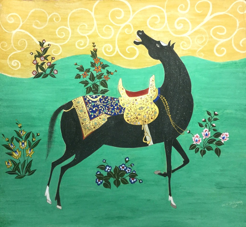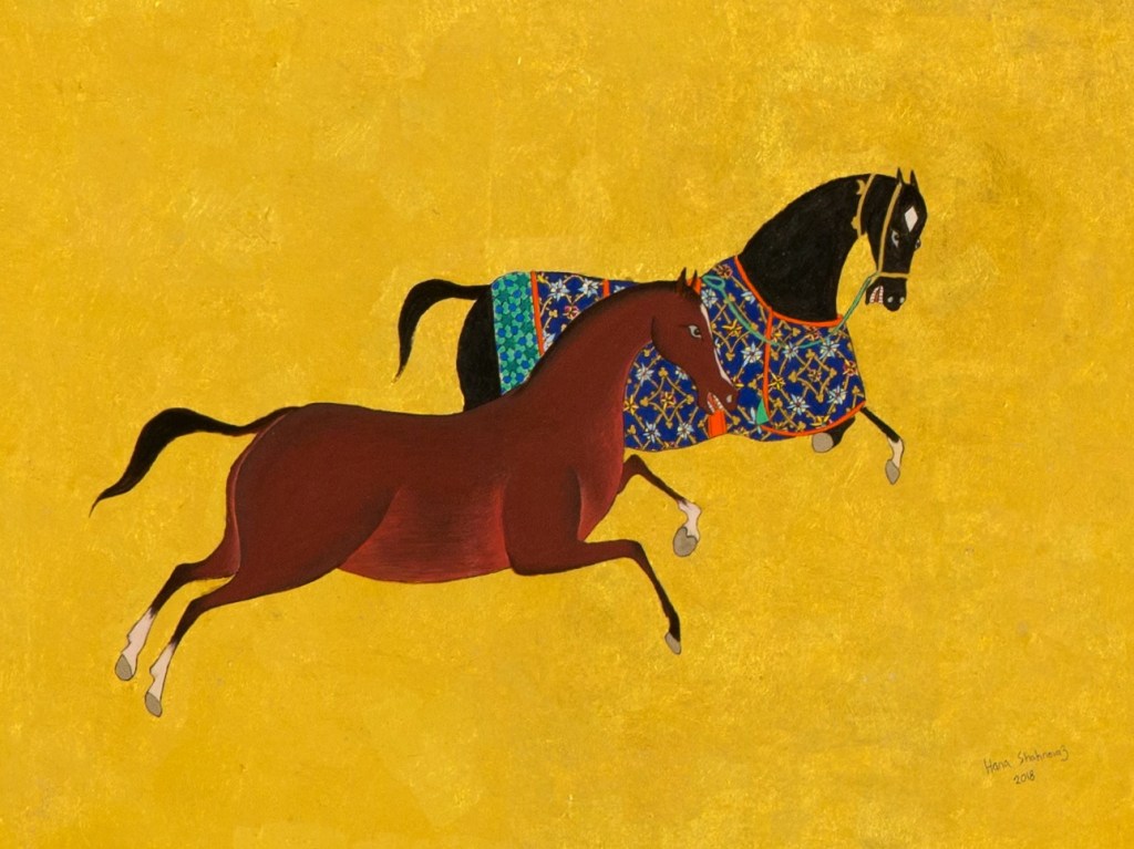 Looking at Hana’s work you’ll notice how intricate it is, and because of that it can take years to produce. “I dedicate one to two years of my life to the big ones”, she explains, “They’re always the hard ones to let go of.” And for the last four years, she’s been dedicating her work to the Persian love story of Khosrow and Shirin, with a focus on the horse aspect, with horses being extra special to Hana. “What they symbolise are a pure wildness and freedom”, she says, “When I’m riding a horse everything disappears. Everything filters away and you’re living in that true authentic moment. When you’re on a horse the horses legs are taking you across the land…you’ve got a pure connection to the ground at the same time your head is in the sky.”