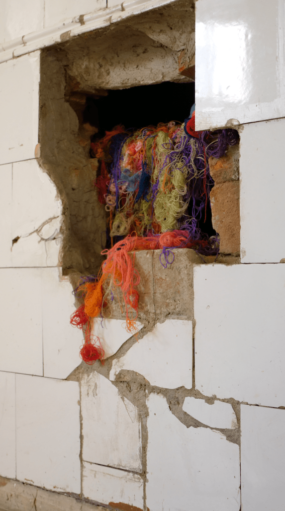 This is the very first show in my career as an artist. It is both a loving homage to my grandmother and the story of the last four years of my life. All the gains and losses, triumphs and defeats, the whole emotional rollercoaster of those years encrypted in abstract embroidery.