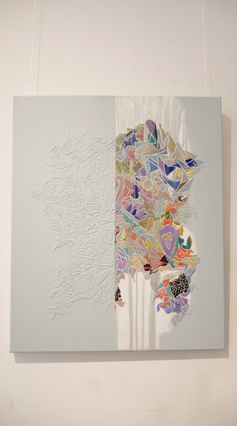 This is the very first show in my career as an artist. It is both a loving homage to my grandmother and the story of the last four years of my life. All the gains and losses, triumphs and defeats, the whole emotional rollercoaster of those years encrypted in abstract embroidery.