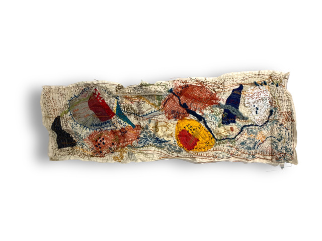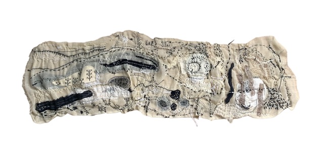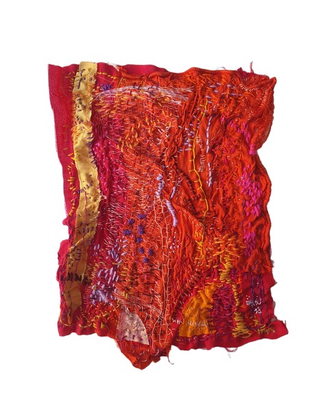 “I don’t think I ever really planned to become an artist”, says Shereen, “It seems like it was a given. It just happened to be that when it was time for university that it would be art, but it was never planned for. As for the textiles, my mum always had textiles and a lot of wool at home and a sewing machine…she used to enjoy working on projects for myself. Watching her I used to steal her sewing machine and her fabrics and cut them up into little dresses for my dolls.” Regarding embroidery, Shereen was interested but didn’t find a passion until recently. She taught IB diploma students art for many years, and got into textile art and textile artists while exploring with her students. “I would experiment with the students, but I left it for a while”, she said, “During Covid it re-emerged with all the quiet time that we had, textiles re-emerged then.”